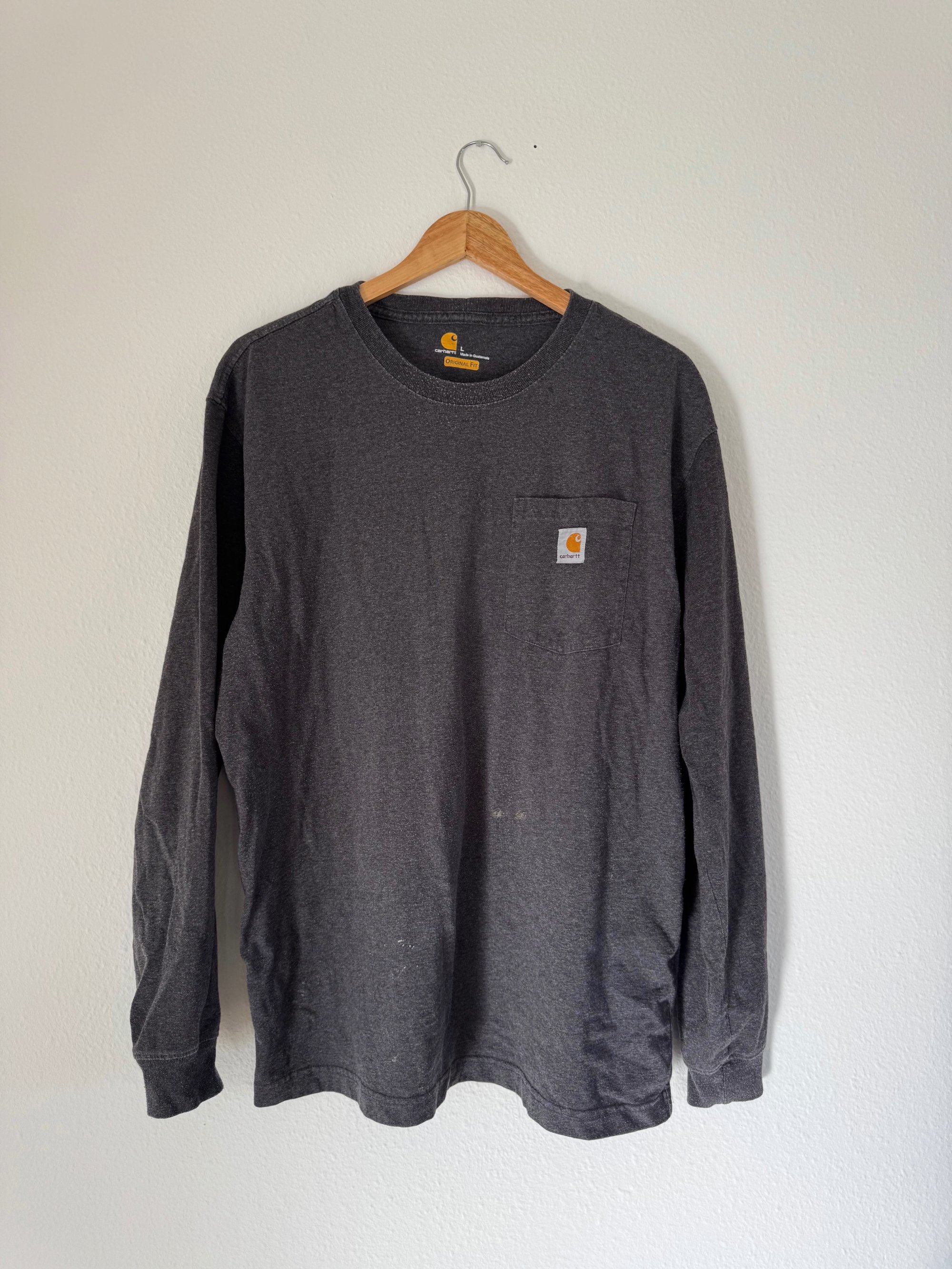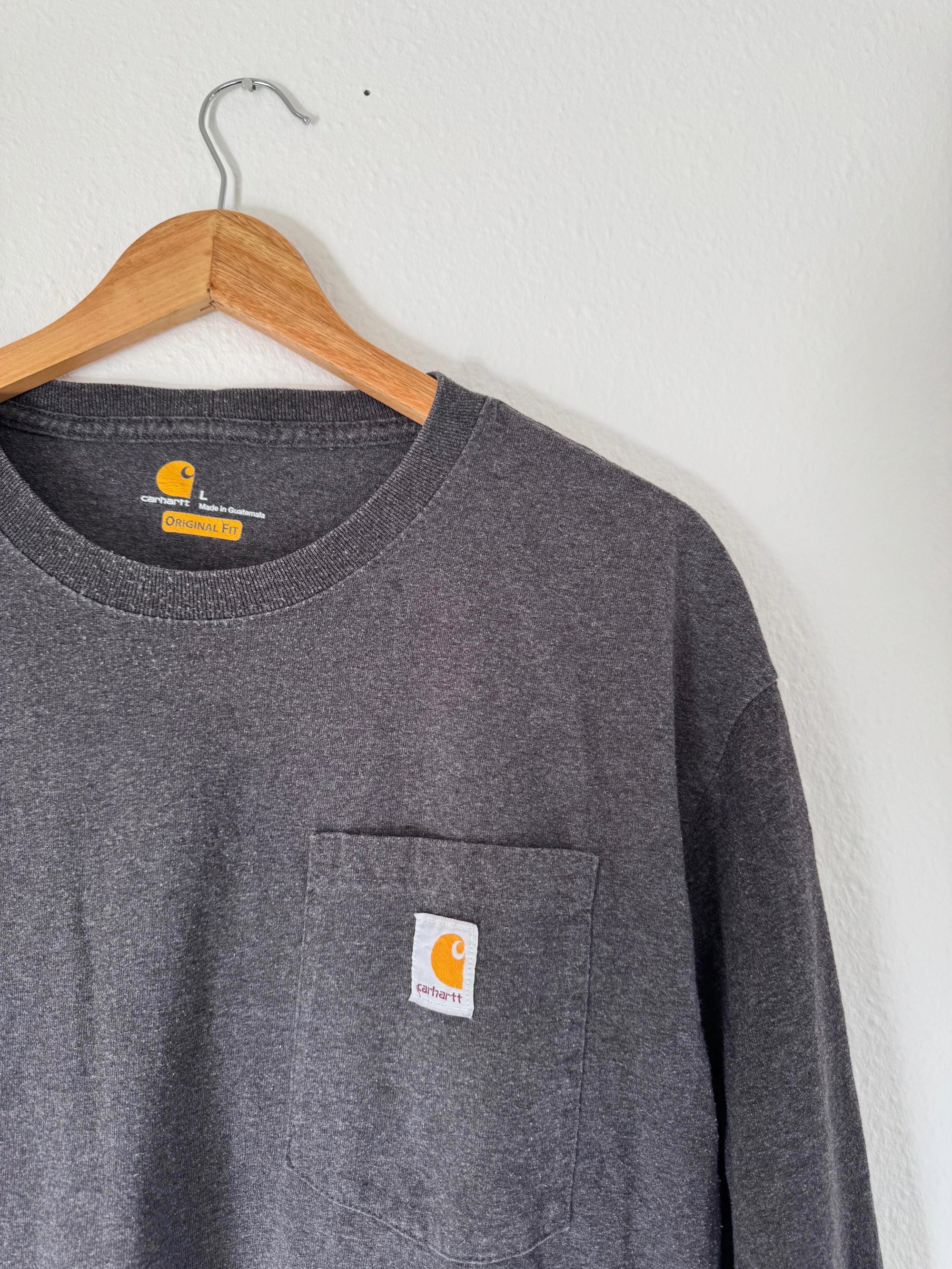 Vintage Carhartt - Grey Marl Pocket Logo Long Sleeve T-Shirt